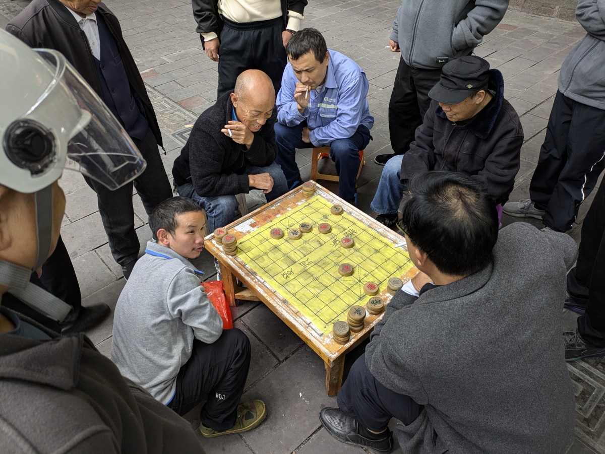 Eine Partie chinesisches Schach auf der Straße zieht Zuschauer an.