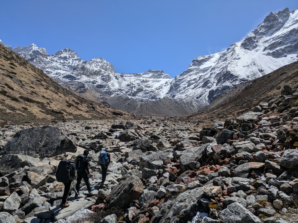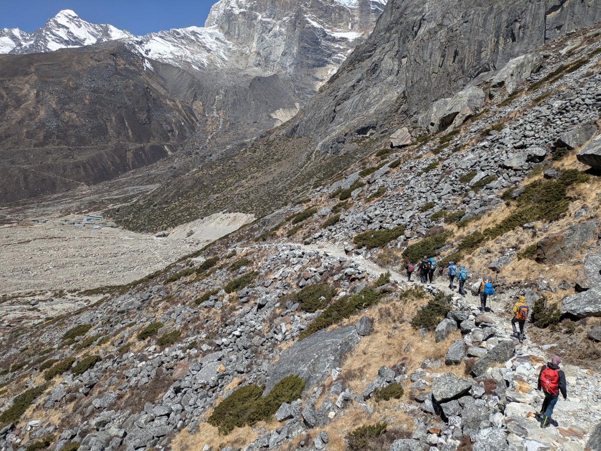 Am nächsten Tag machen wir uns bei besten Bedingungen von Khare aus auf den Rückweg. Wie nach solchen Gipfeltagen üblich stellt sich bei mir