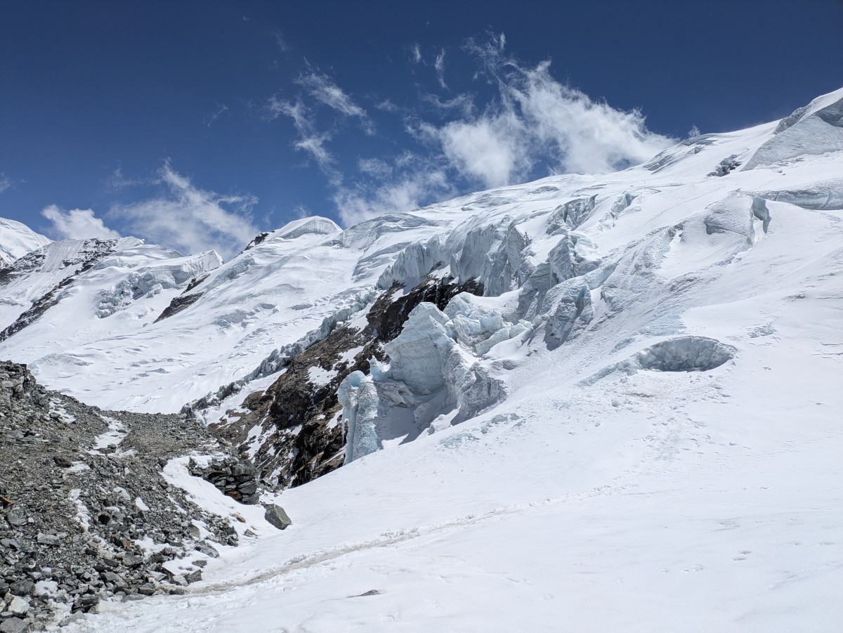 Unter den Eisbrüchen des Khare-Gletschers; rechts davon Peak 41.