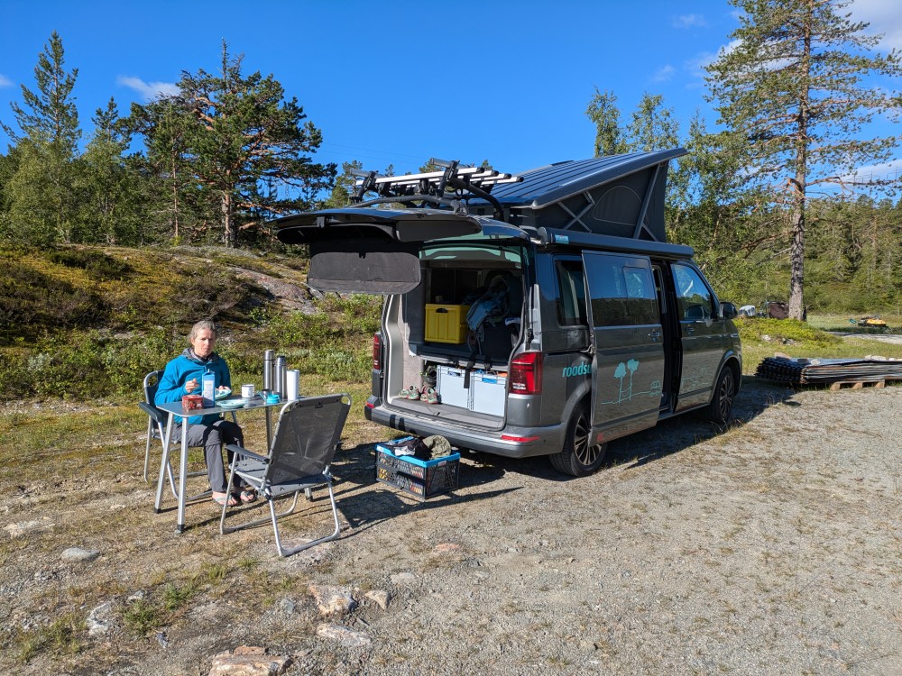 Wir schlafen uns aus, machen ein kleines Frühstück im Freien, und dann geht die Grand Tour durch Norwegen richtig los!