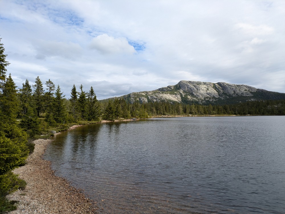 Am idyllischen Ufer des Gavlesjå packt es uns dann - das Wasser schaut verführerisch aus und scheint auch nicht übermäßig kalt zu sein. Wir gönnen uns einen kleinen Schwumm