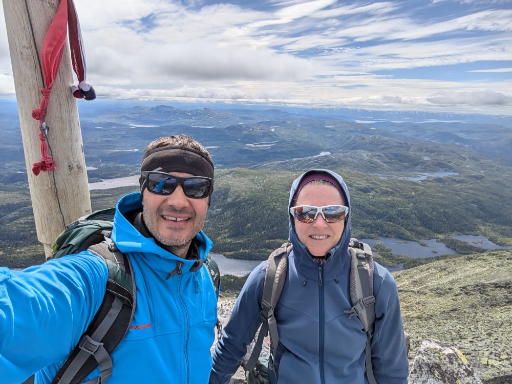 Der Wind macht den Aufenthalt am Gipfel durchaus etwas ungemütlich - wir kennen es nicht anders von Norwegen - aber wir sind ja kleidungstechnisch gut ausgerüstet.