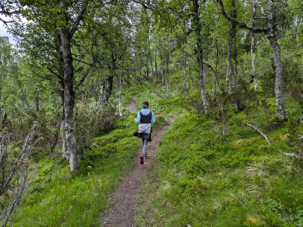Trails in sanft gewelltem Gelände, garniert mit üppig-grüner Vegetation aus Birken, Sträuchern und Gräsern.