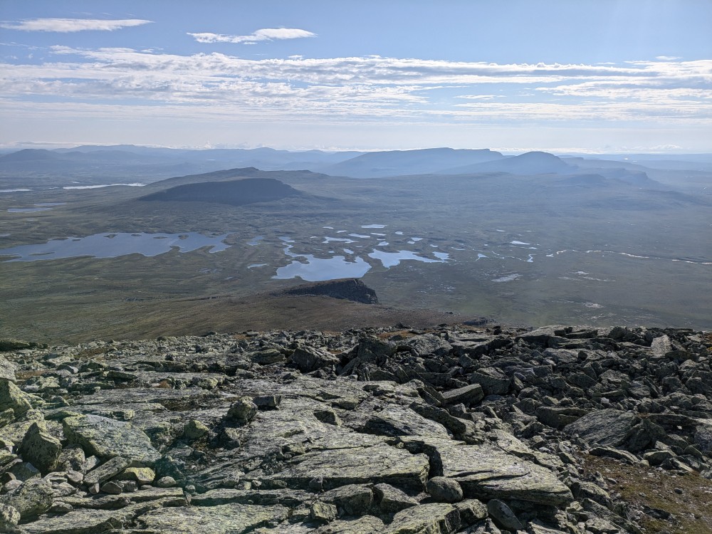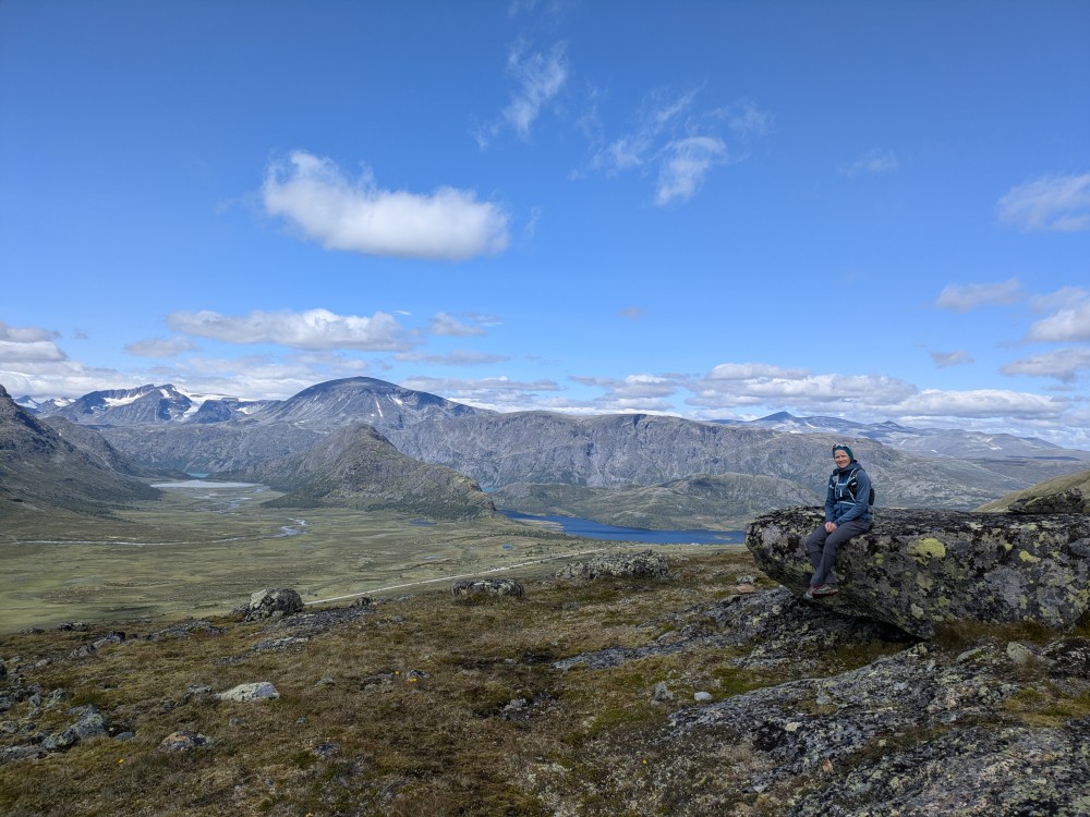 Nach etwa anderthalb Stunden stehen wir nach etwas Gekraxel am Gipfelvarden und sehen und noch einmal an der norwegischen Landschaft satt.