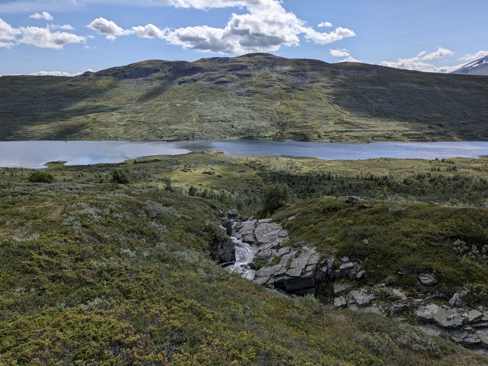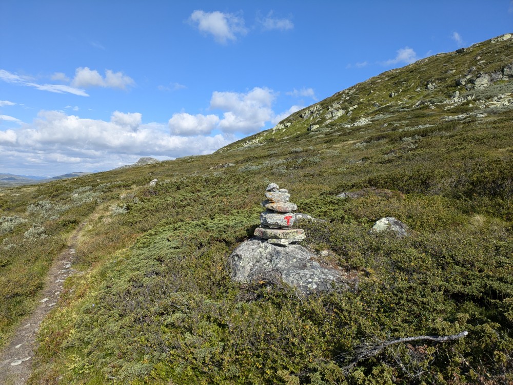 Wir wandern weiter nach Osten zur Rundhøe, und dann nach Süden entlang des kleinen Sandbakkbekken hinab zum See Øvre Heimdalsvatnet.