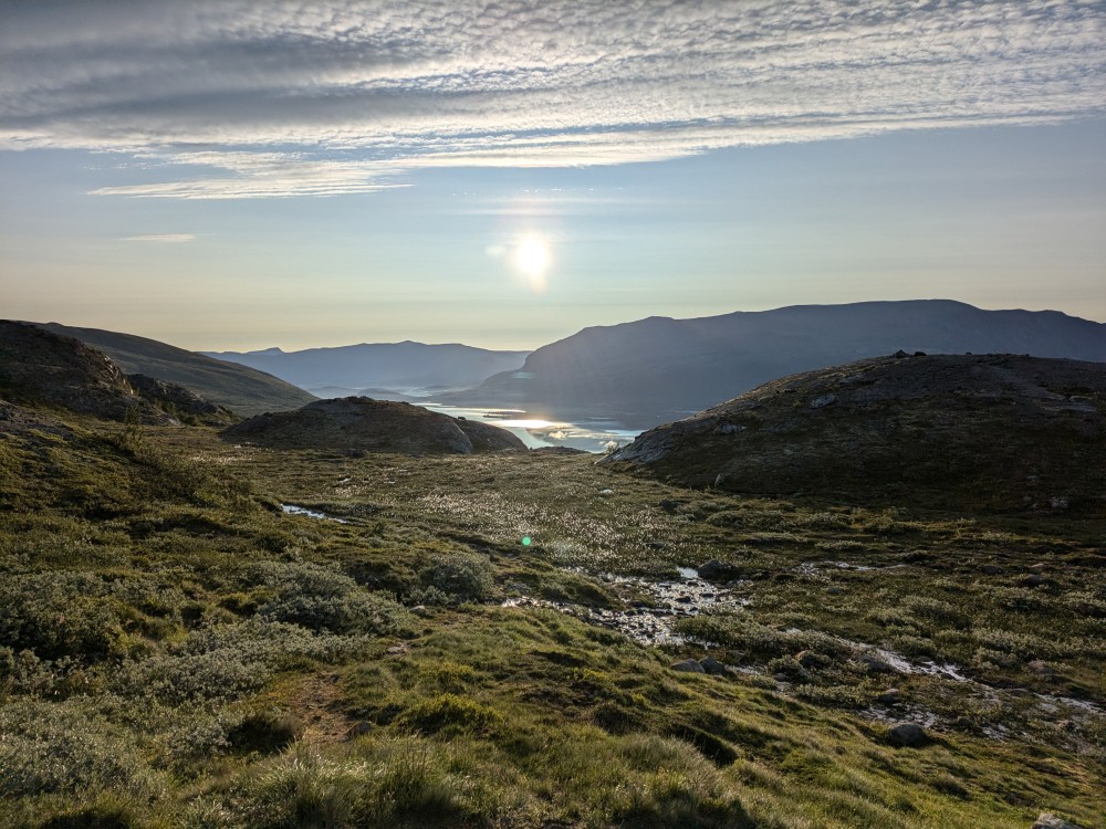 Nur wenig später stehen wir um acht Uhr morgens am höchsten Punkt der heutigen Wanderung, dem Gipfel des Veslfjellets.