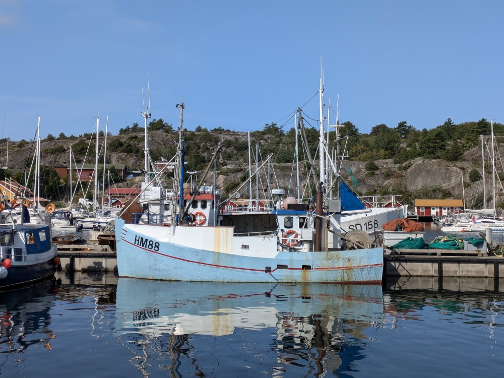Unsere Dosis Kaffee und Kuchen holen wir uns am nächsten Morgen in Grebbestadt in einem netten Café ab.Danach schlendern wir durch die