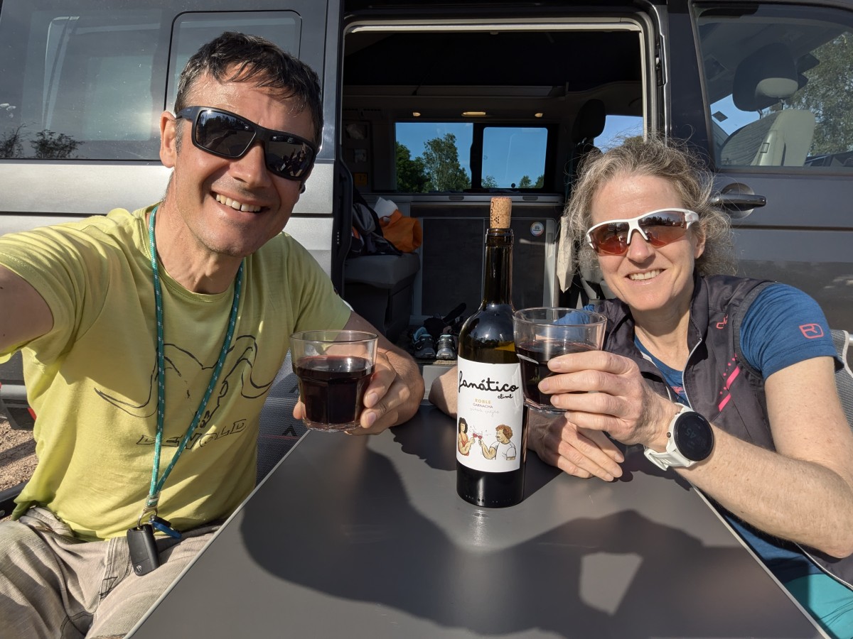 Flasche Wein an, die wir noch aus Deutschlad mit dabei haben.
