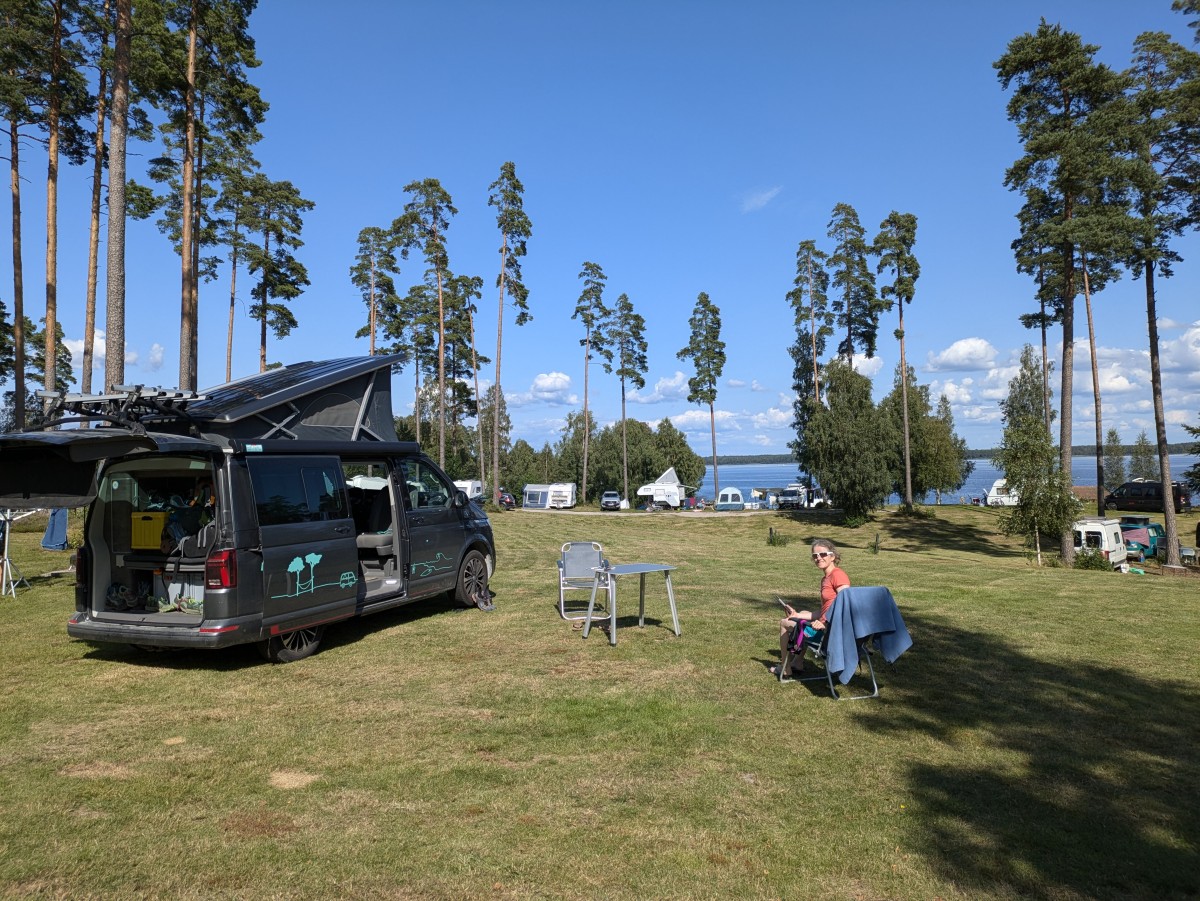 parkähnlichen Campingplatz verbringen wir eine schöne Zeit mit Badeeinlagen im angenehmen Wasser. Hier bleibt die Zeit im Sommer stehen,