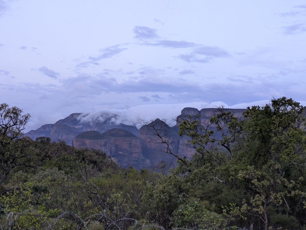 Wolken schwappen über die Wände des Blyde-Canyons.