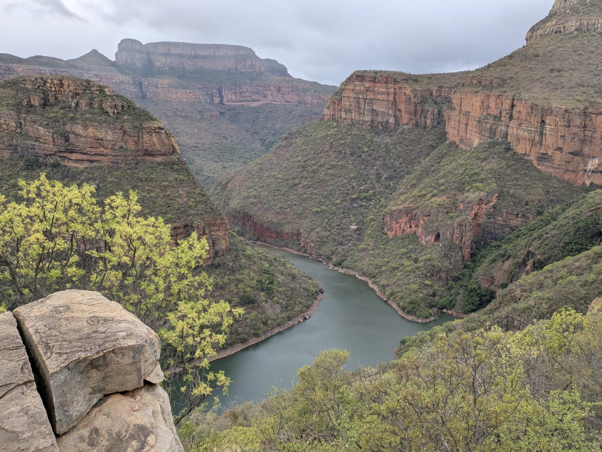 Tief unter uns fließt der Blyde dahin.
