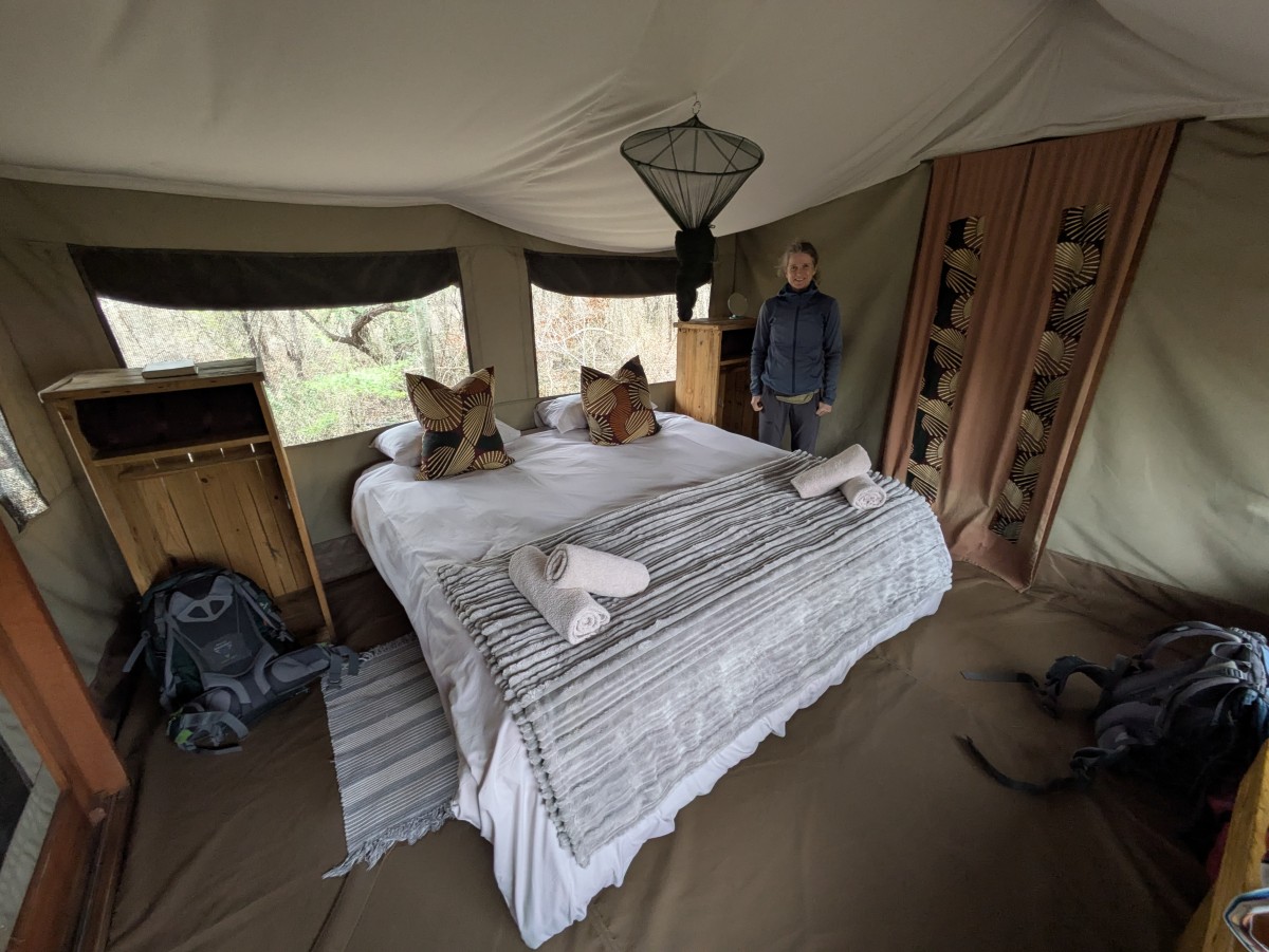 Nach Ankunft im Wild Olive Tree Camp an der Nordgrenze des Krüger-Nationalparks beziehen wir die netten Bungalow-Zelte. Nach einer Mittagsbrotzeit geht es dann auf eine erste Safari in den Park hinein. Wir sind schon gespannt, was wir diesmal so zu sehen bekommen werden!