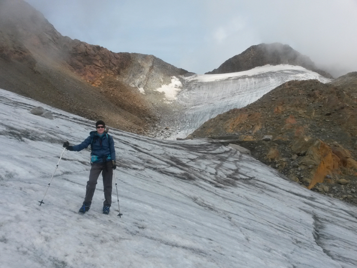 erreichen den Talort Obergurgl morgens um halb sieben. Bei bewölkten Bedingungen wandern wir zum auf 3006 m hoch