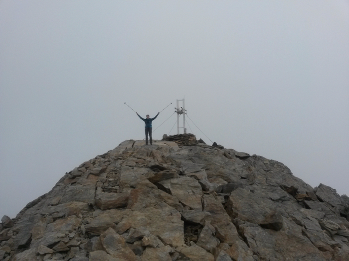 Gipfel weiterzugehen. Leider geht der Plan in Bezug auf das Wetter nicht ganz auf; immer wieder hüllen uns dichte Wolken