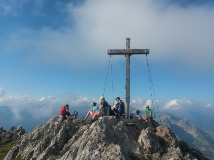 Gipfel Seinskopf - der Wind bläst, und wir sind um die zusätzliche Kleidungsschicht froh, die wir im Rucksack