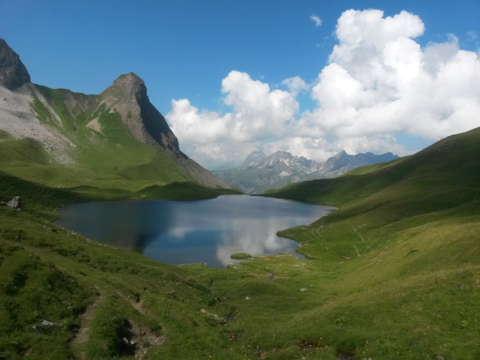 Nach der verdienten Brotzeit an der Rappenseehütte mache ich nebenstehendes Bild mit dem Rappensee und Rappenseeköpfle.