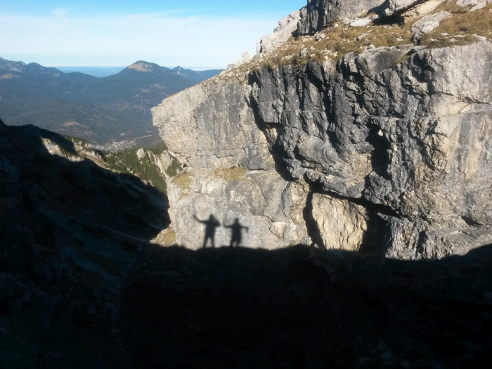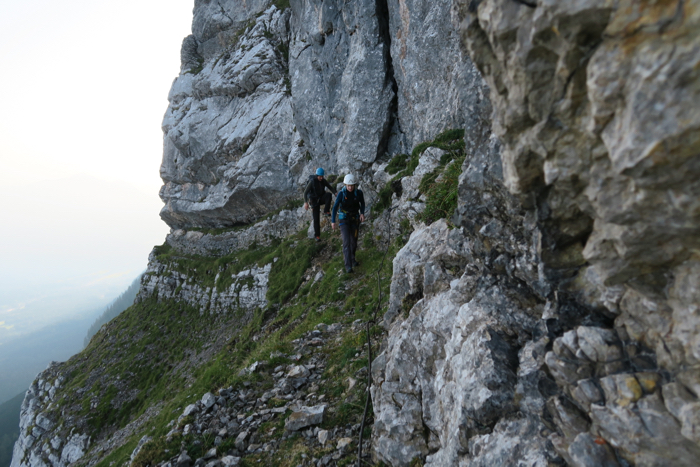 zu beiden Seiten kraxeln wir teilweise seilversichert über Steinkarlspitze und Rotwandlspitze