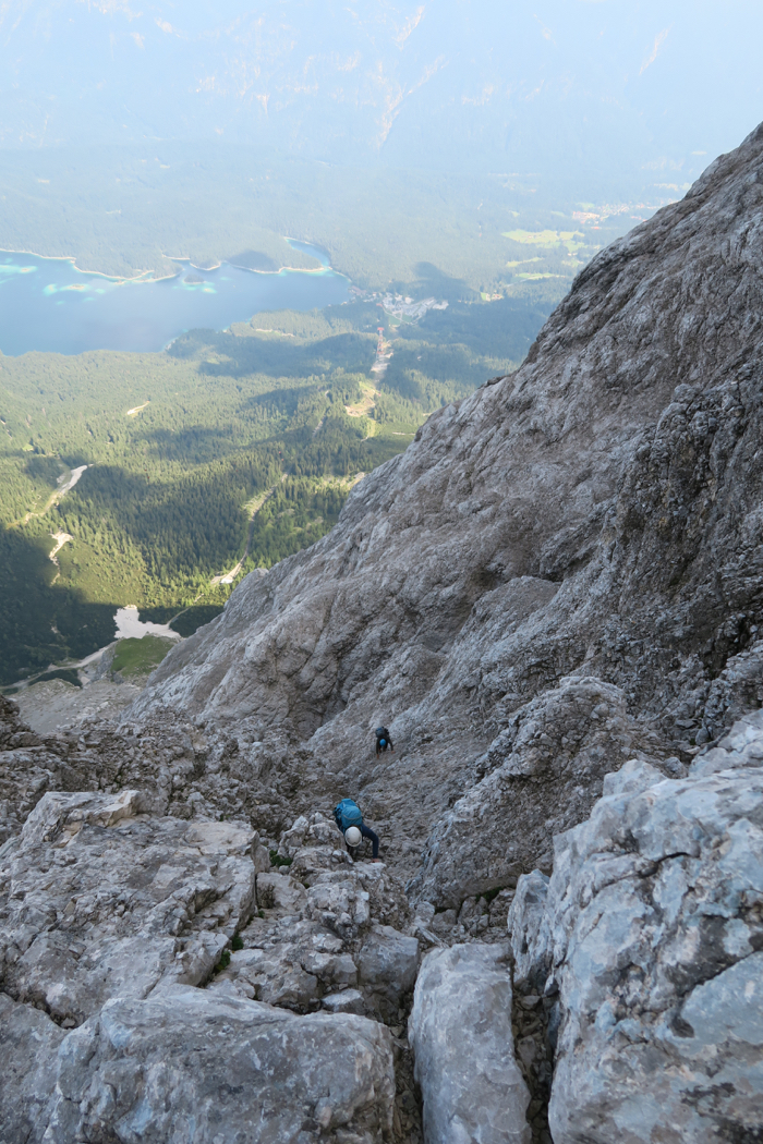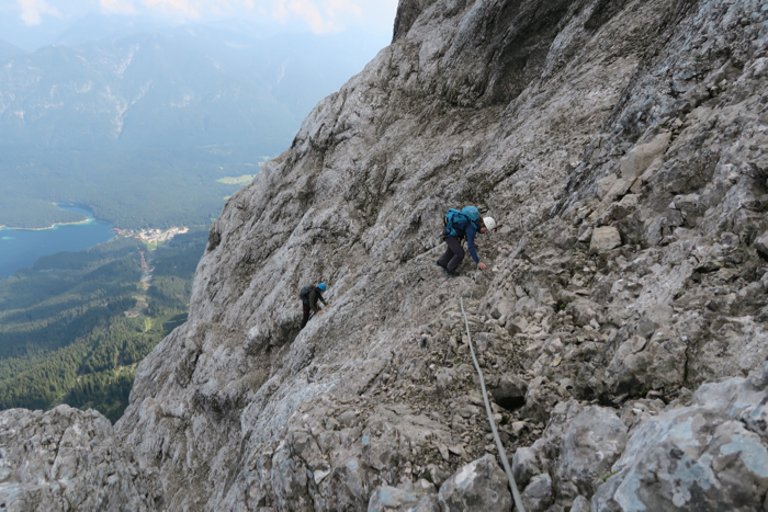 seilen wir uns vom dort etwa 50 Meter auf den Höllental-Steig zur Zugspitze ab. Nun stehen uns noch etwa 300 Hm im normalen