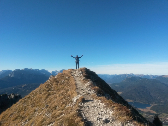 Nach einer verdienten Rast auf der Soiernspitze samt Beobachtung einiger Gamsherden geht es Richtung