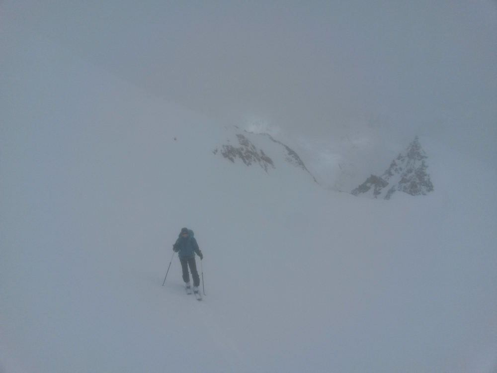 Auch am Samstag erwartet uns auf dem Weg zum hinteren Daunkopf schlechte Sicht und Wind.