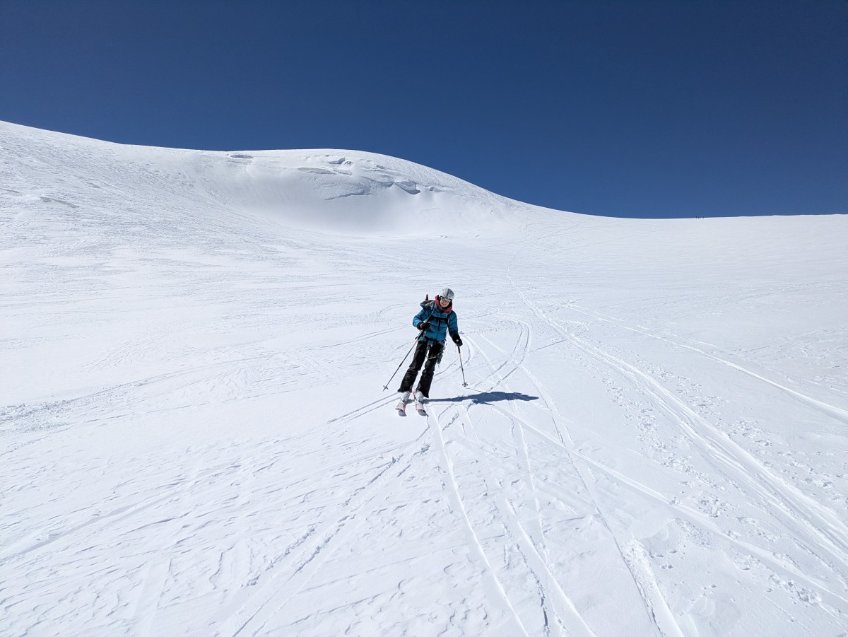 Auch die Abfahrt ist kommod; die breiten idealen Hänge erlauben entspannte Kurven.