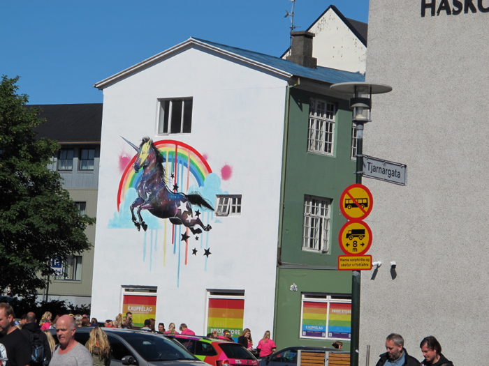 Während unseres Kurzaufenthaltes findet die Gay Pride Parade statt. Die Innenstadt Reykjaviks ist