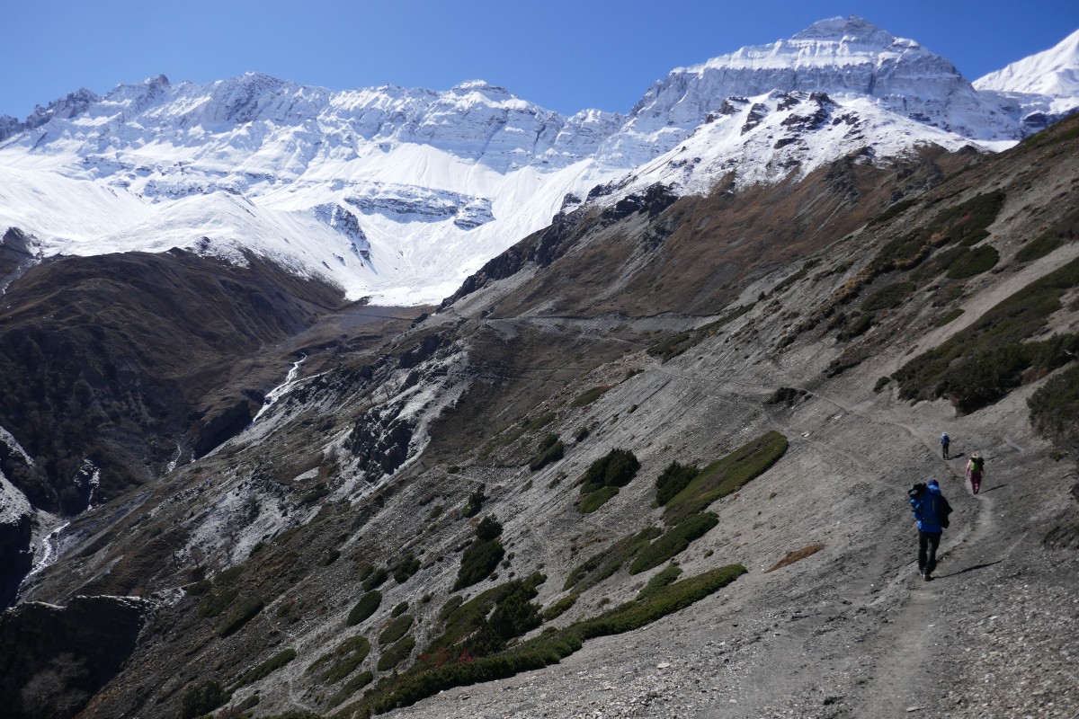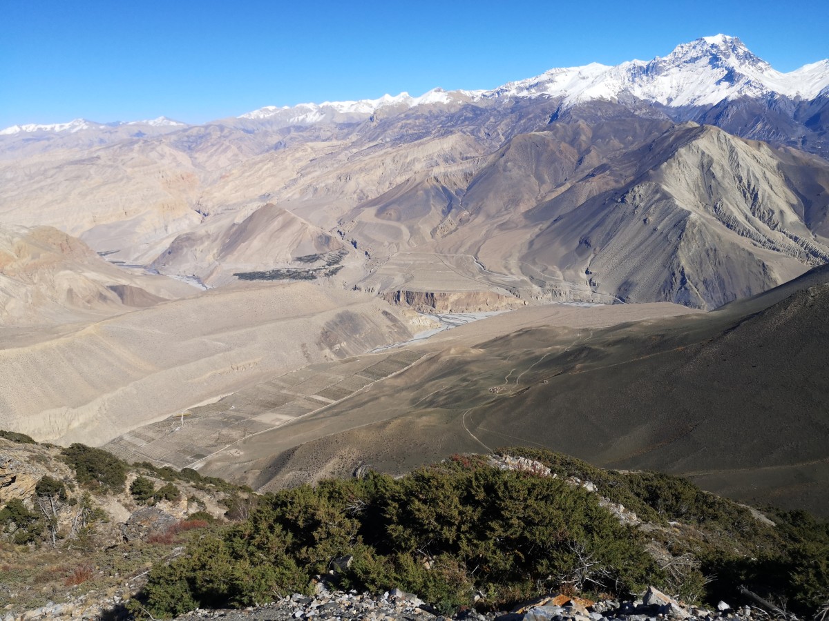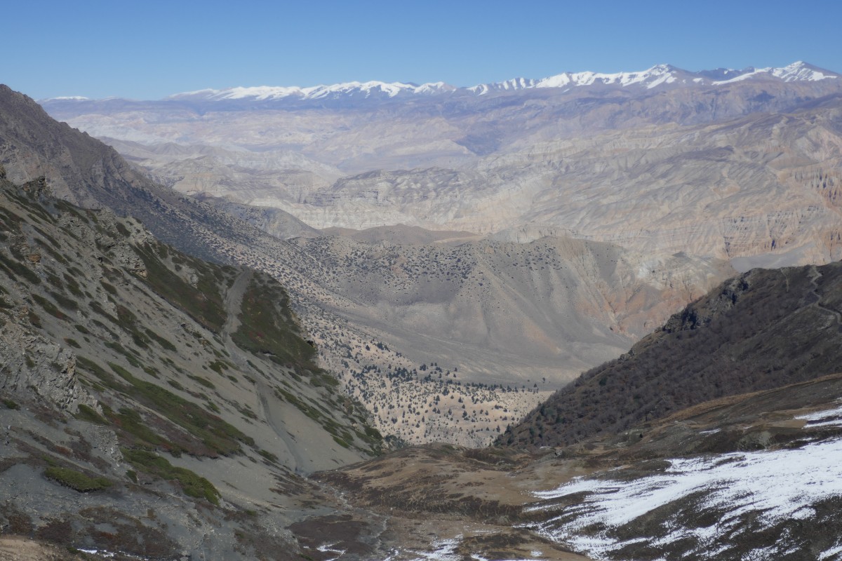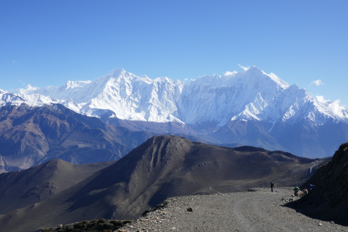 Nach Osten sehen wir den Thorong La ein, über den wir vor elf Jahren die Annapurna-Runde gegangen waren. Auch dieser Paß