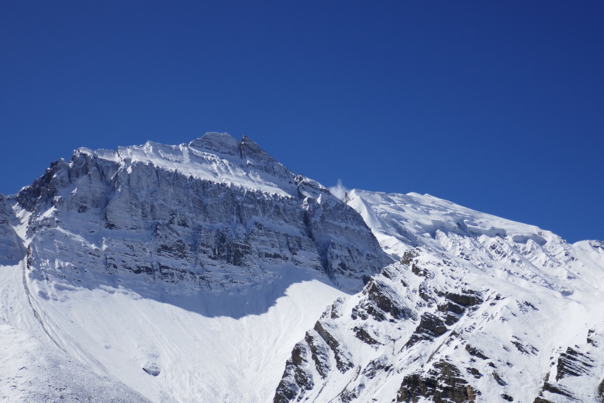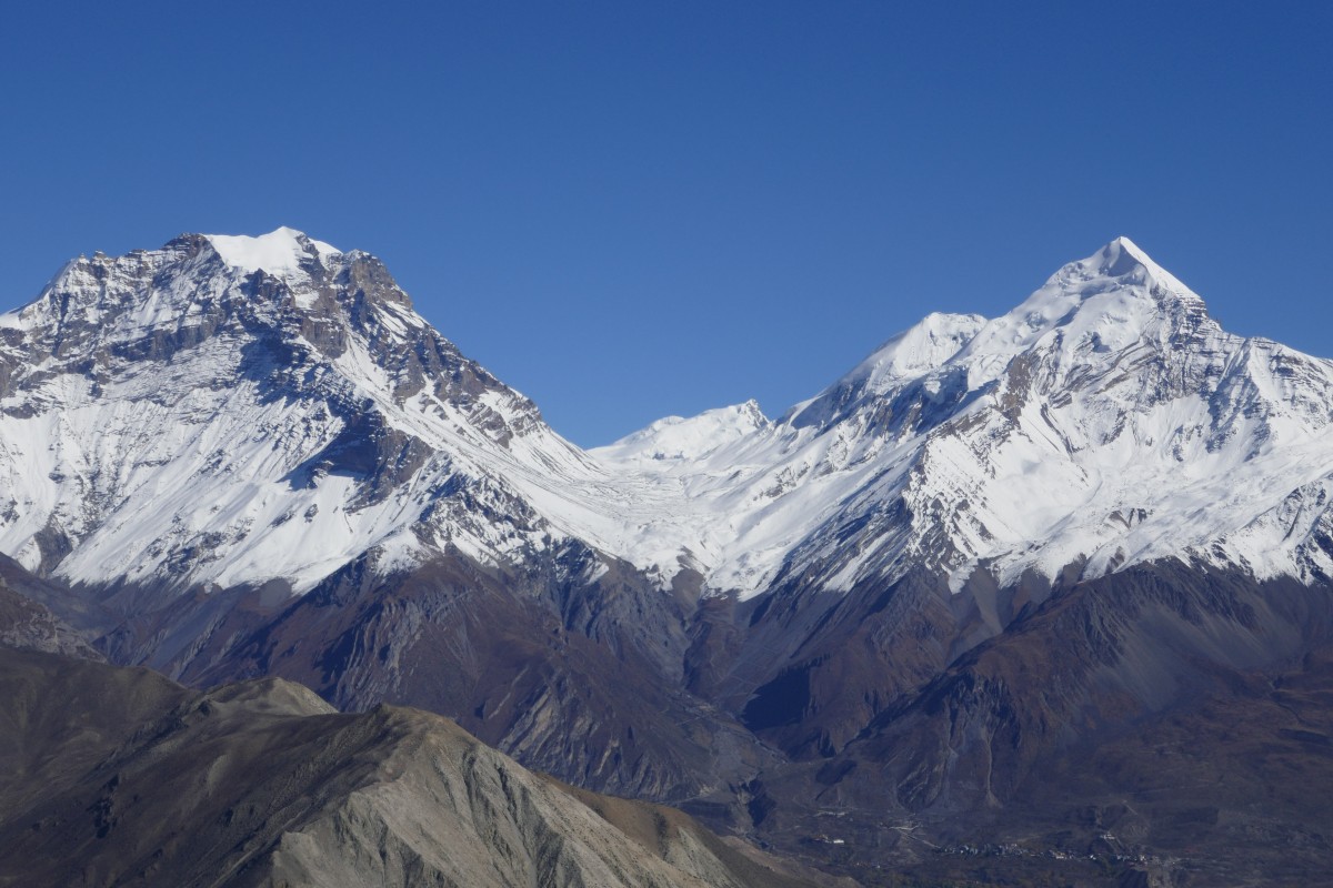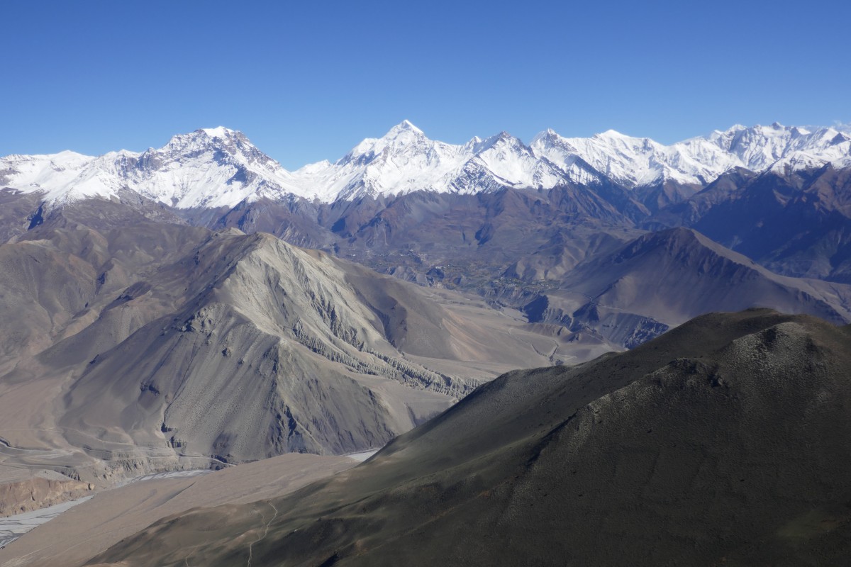 Nach Südosten hin baut sich das Nilgiri-Massiv auf, dahinter dann die noch höhere Annapurna-Kette.