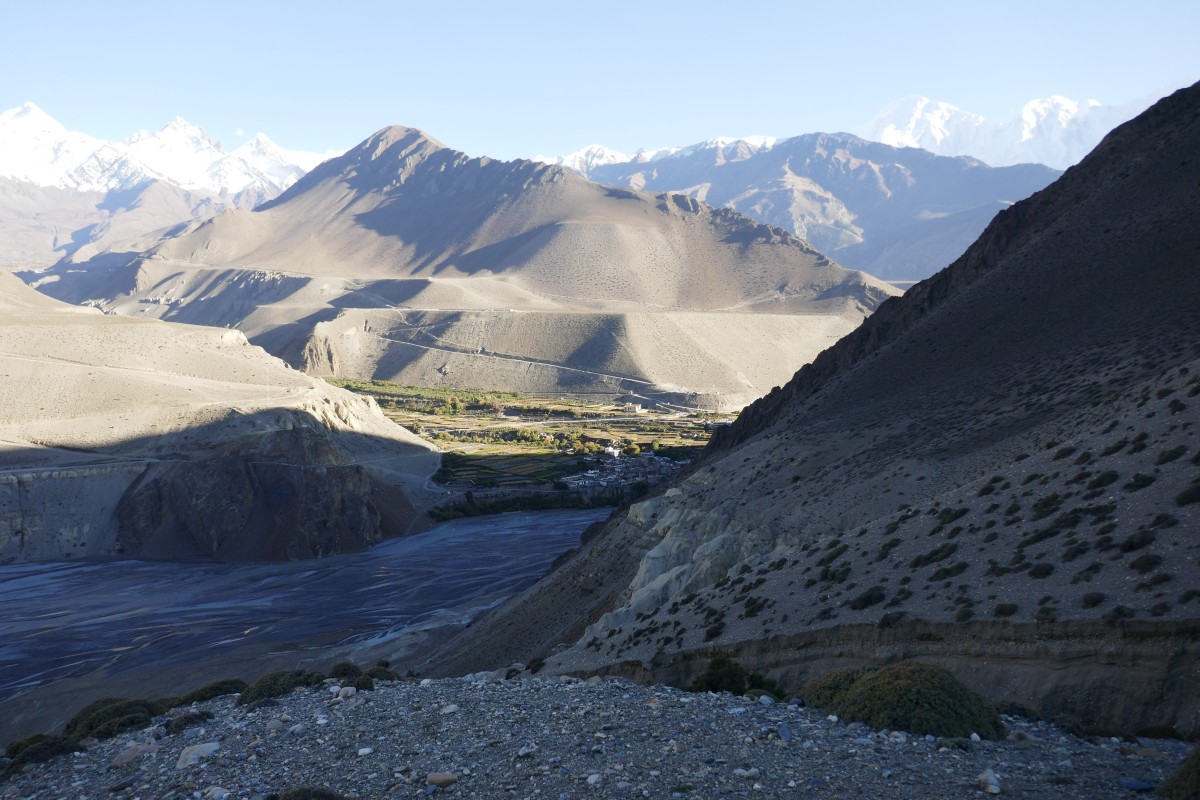 Wir laufen den langen Abstieg nach Kagbeni flott hinunter; die Aussicht auf eine warme Dusche und die Nacht in einem Bett