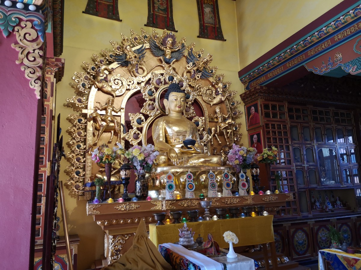 Das goldene Dach der neuen Gompa glitzert über den umgebenden Dächern. Blick von unserer Unterkunft aus.