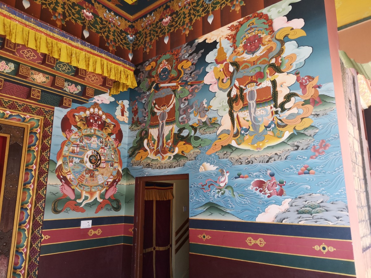 Neben dem Eingang zur neuen Gompa findet sich eine schöne Darstellung des Rad des Lebens.