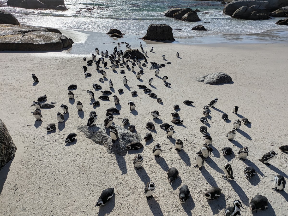 Der nächste Tag spült uns zunächst nach Boulders Beach, wo wir die Pinguinkolonie besuchen. Die possierlichen Vögel sind immer wieder eine Schau!