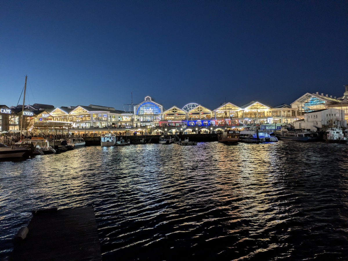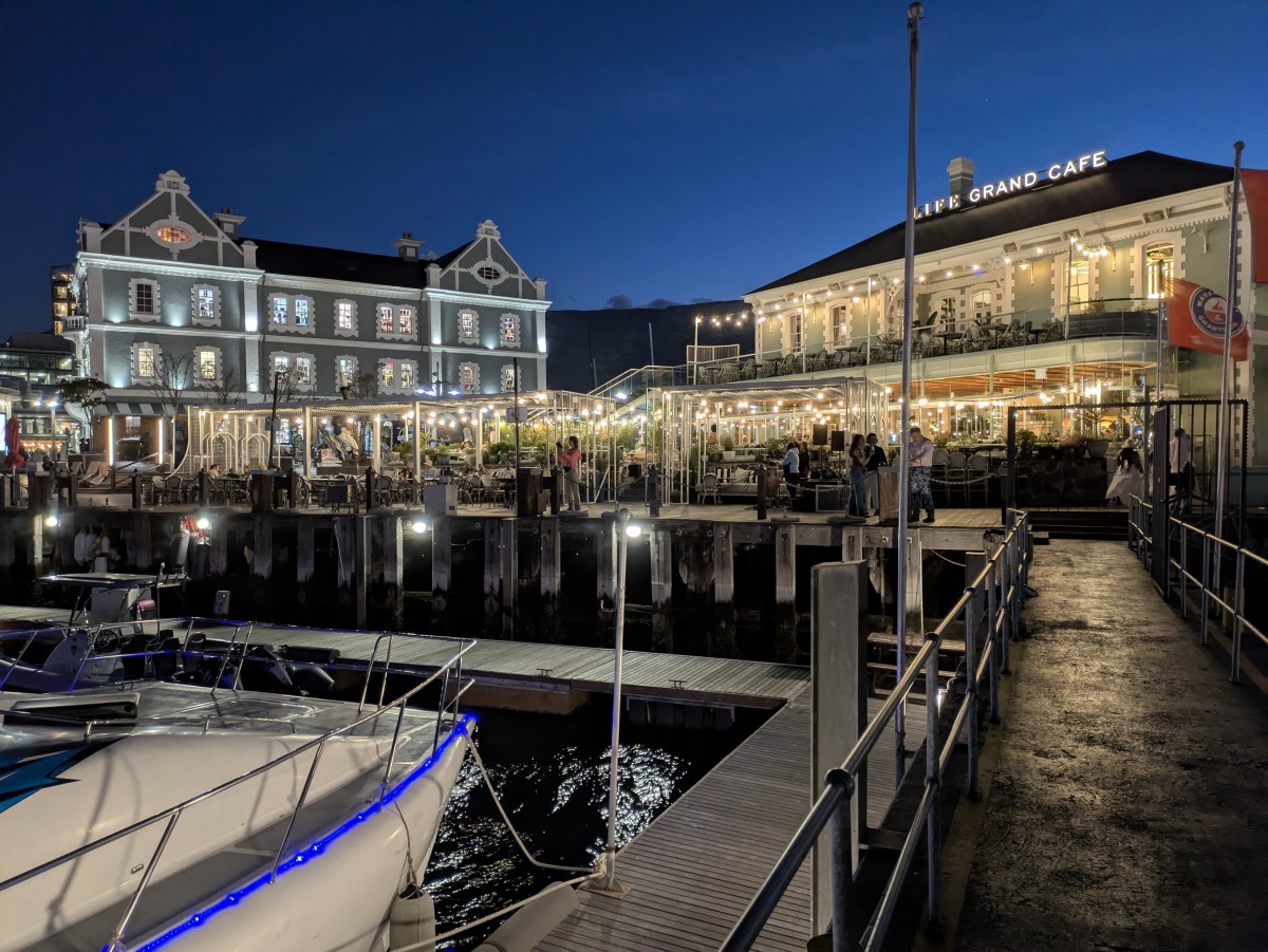 Abends geht es dann zum Essen an die Victoria Wharf. Der Tafelberg spuckt immer noch Wolken.