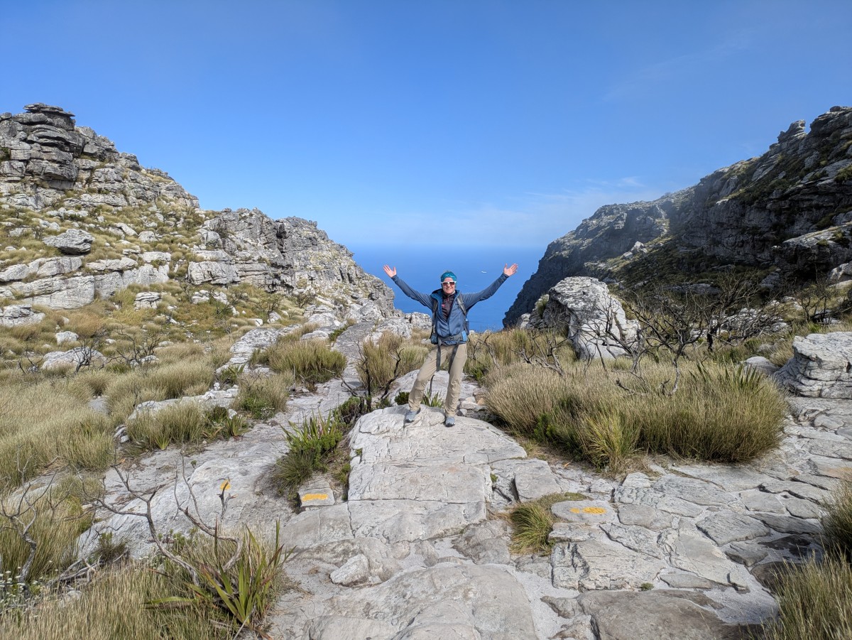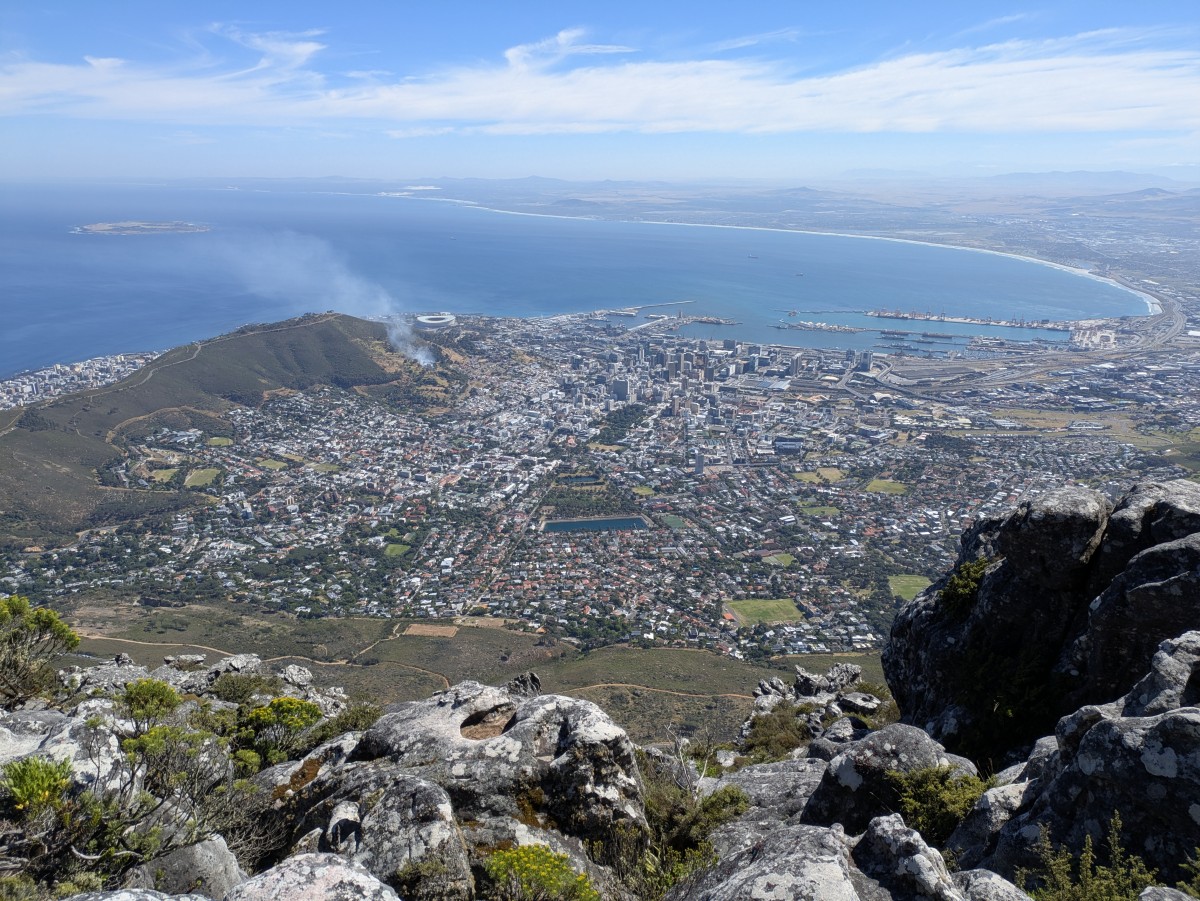 ...und außerdem haben wir das Glück, daß sich die Wolke am Gipfelplateau des Tafelberges aufgelöst hat, als wir oben ankommen